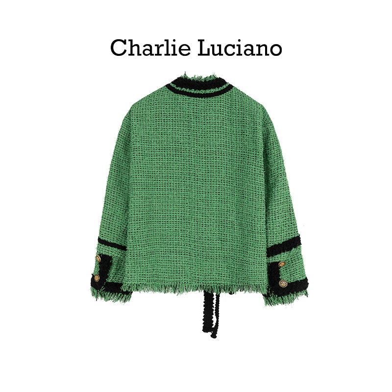 Charlie Luciano collarless jacket, women's retro style tassel jacket