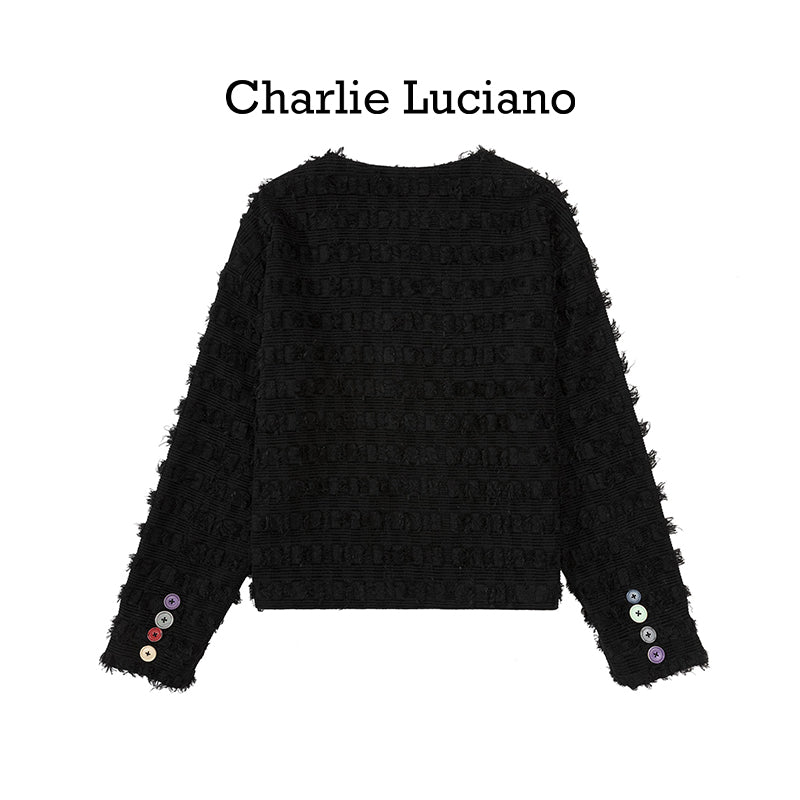 Charlie Luciano Color Buckle Coarse Flower Collarless Jacket with Small Fragrant Style CL Coat for Women