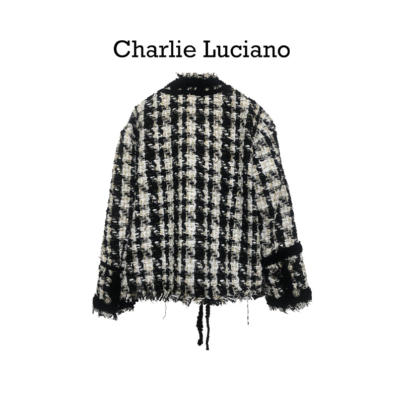 Charlie Luciano jacket vintage tassel couple plaid jacket short top trendy