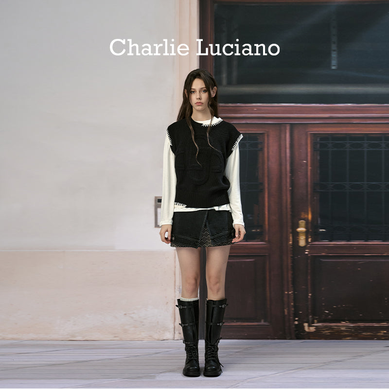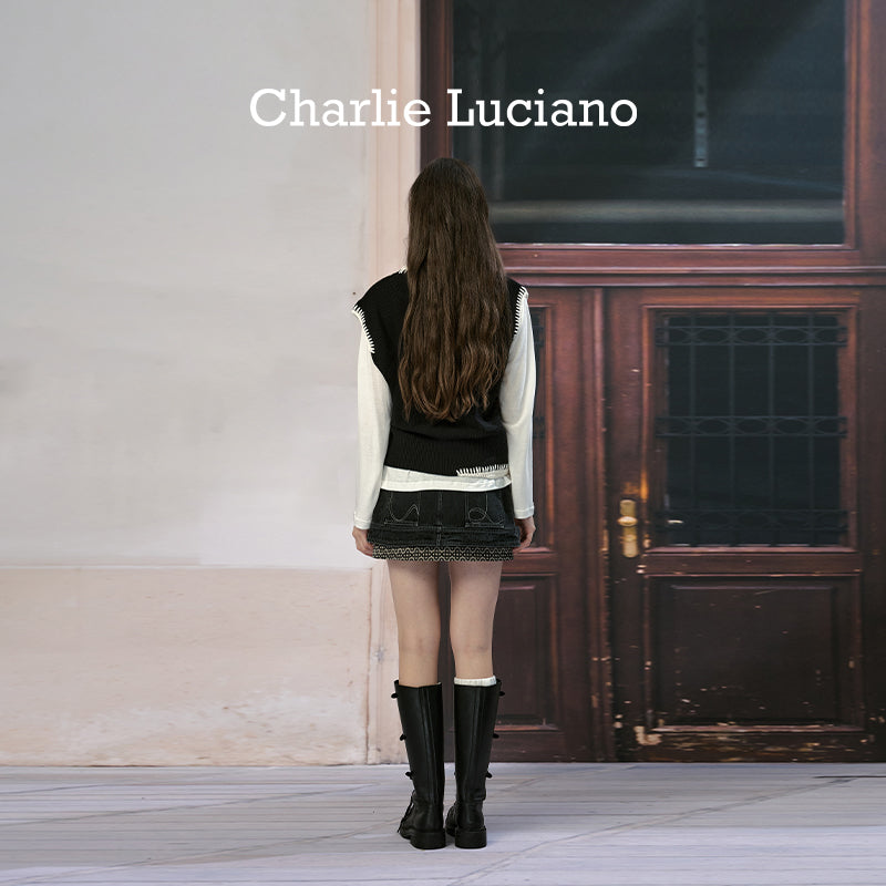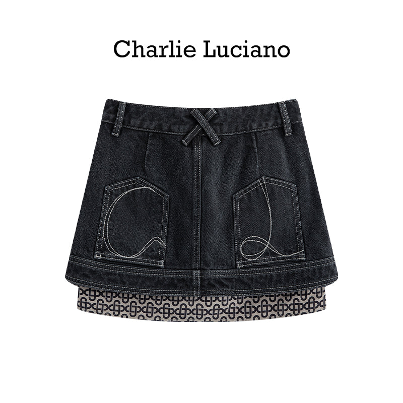 Charlie Luciano printed denim short skirt high waisted midi skirt for women