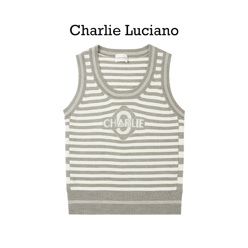 Charlie Luciano striped jacquard knitted sleeveless vest, summer new trendy brand top for women